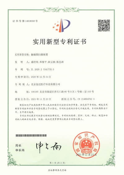 北京昆迈医疗科技有限公司是以量子弱磁传感与成像为技术手段,专注于新一代脑功能影像高端设备开发的高新技术企业,是北京市医药健康领域重点引导落地的科技创新型企业。公司专注于量子脑磁图的研发与生产,以自主研发的新一代原子磁强计(optically pumped magnetometer, OPM)为核心,构建了包含精密弱磁探测、高效磁屏蔽、高分辨磁反演的技术闭环,拥有完整的研发、生产、安装、服务产业链,专注于为用户提供脑功能成像—体化解决方案。公司以为精神和神经系统疾病临床需求提供精准定量的诊疗解决方案为目标,致力于成为脑功能成像技术的革新者和临床应用开拓者,造福数亿脑疾病患者。